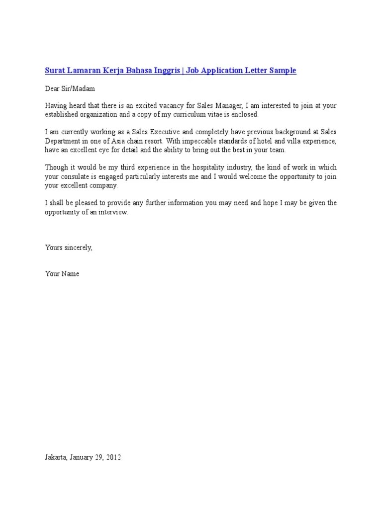 Sebelum masuk ke materi, coba jawab pertanyaan di bawah ini dulu, yuk ! Di antaranya menggunakan bahasa inggris yang formal dan menuliskannya sesuai dengan tata bahasa yang benar. Bagi recruiter, surat lamaran dan cover letter adalah contoh cerminan kesan pertama yang paling baik dari sosok si pencari kerja — apalagi jika dibuat dalam bahasa inggris. Dalam surat lamaran kerja untuk. Hal ini menyebabkan tingginya permintaan surat lamaran kerja berbahasa asing, terutama bahasa …